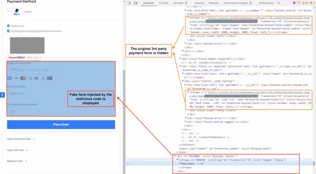 Once inside, Magecart operators stealthily deploy skimming payloads designed to persist and evade both users and defenders: