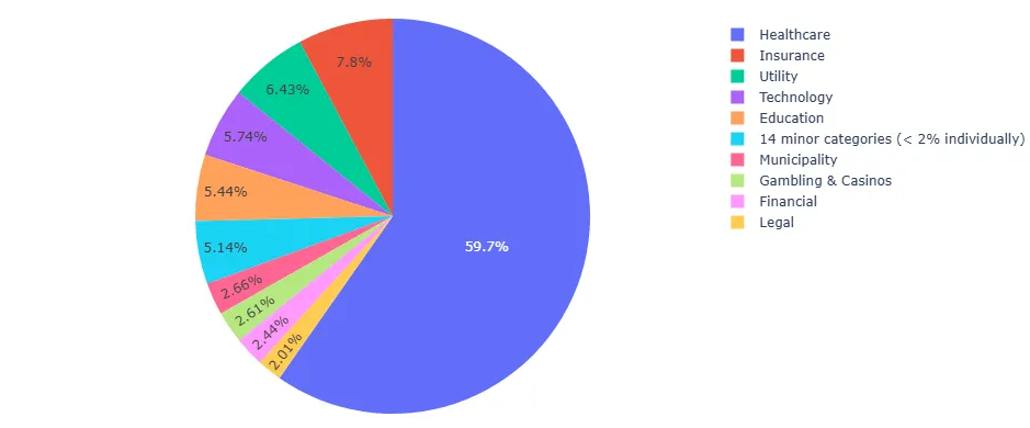A notable example comes from Hunter Strategy’s 2025 (Hunter Strategy, 2025) threat assessment on Interlock, which reports results consistent with our own analysis. As shown in Figure 3, more than 59 percent of events matching indicators associated with known Interlock activity were observed within the healthcare sector across Centripetal’s customer base. Hunter Strategy’s insights (Figure 4) reflect the same trend, further validating the accuracy of our attribution and the reliability of the indicators identified within Centripetal’s datasets.