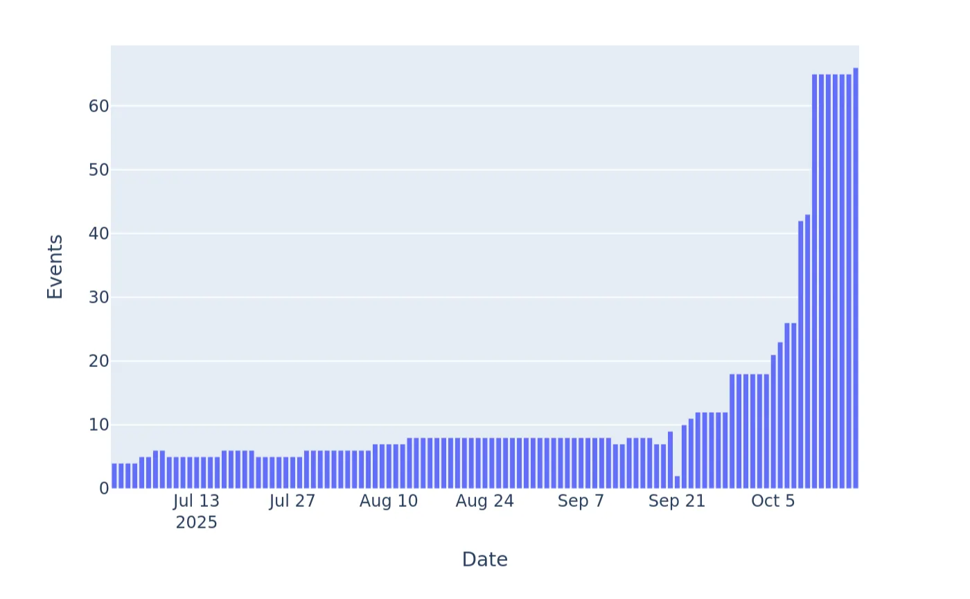 To better understand the scope and timeline of related exploitation activity, Centripetal analyzed network indicators supplied by Oracle in conjunction with GreyNoise community telemetry. The review covered data collected between July 1 (before the first signs of suspicious scanning and probing behavior were reported) and October 22, 2025. This period captures the pre-disclosure reconnaissance phase, the escalation around the time of public disclosure, and the post-exposure scanning surge.