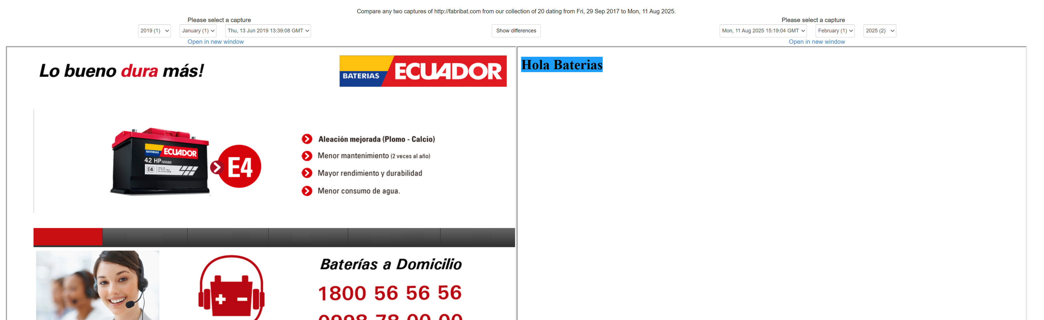 The notable trigger domain driving the higher average in this analysis is fabribat[.]com (Figure 3), a 9 year old domain that illustrates the reuse of aged infrastructure commonly observed in phishing campaigns. Historical records show that although the domain is mature, it was originally created in 2017 to impersonate an Ecuadorian battery business. (Figure 5)