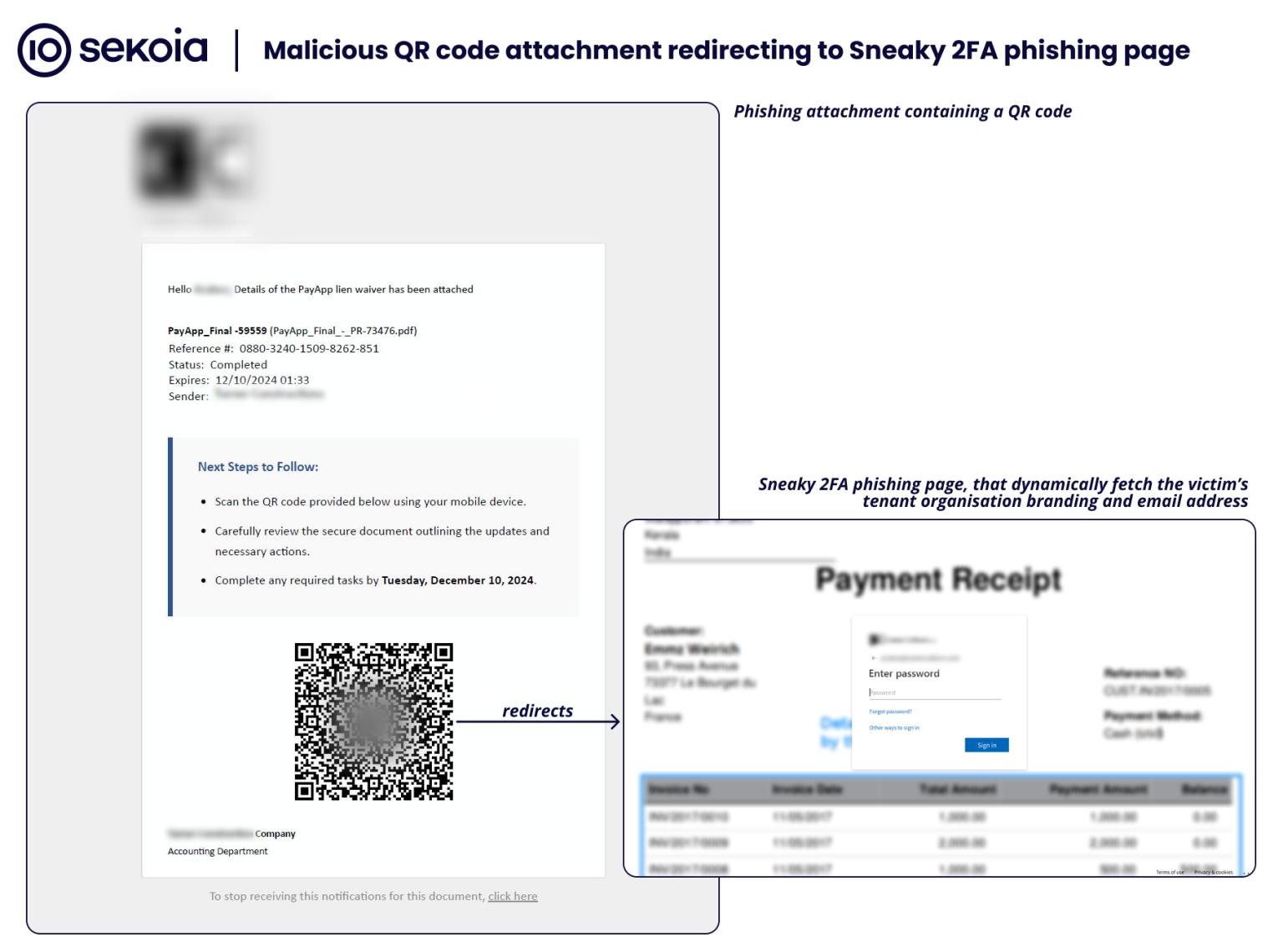 - Spear phishing email is sent with a lure (QR code or fake invoice attachment)